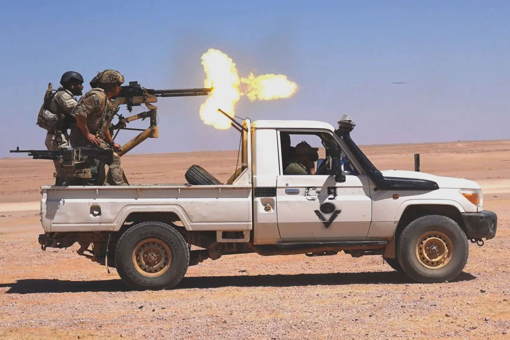 Toyota Land Cruiser 76 LX with long range tanks, snorkel, and modular cases. Crew of 2 to 3, built for multi day autonomy.